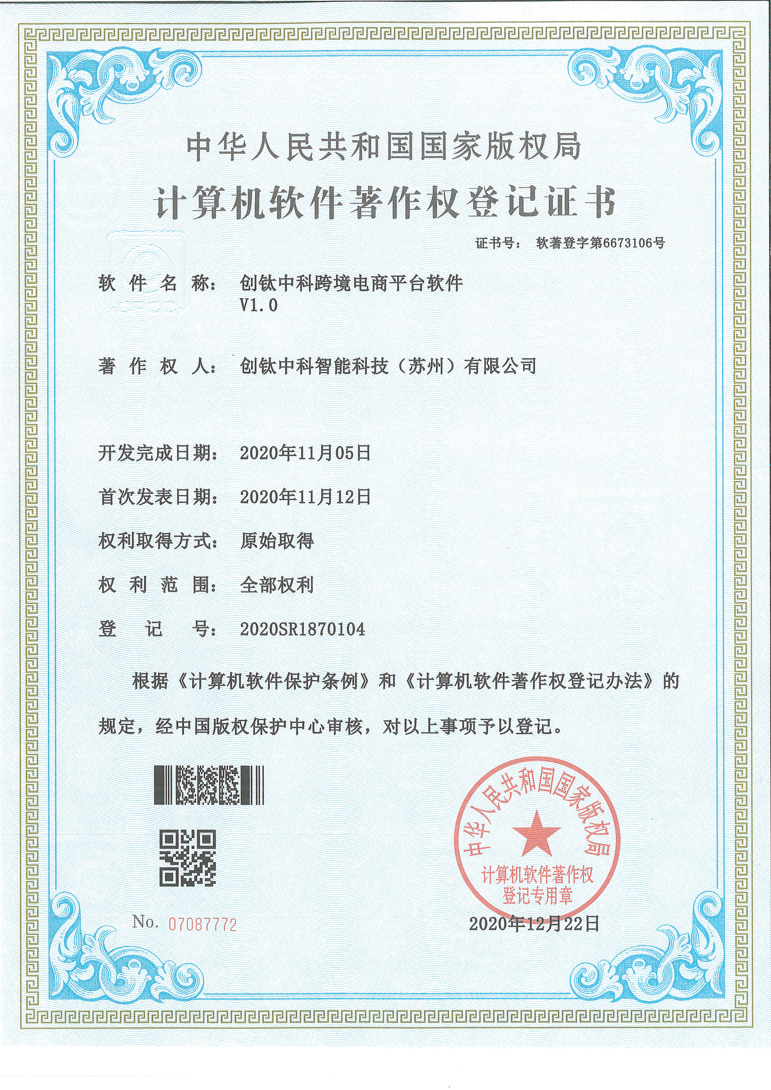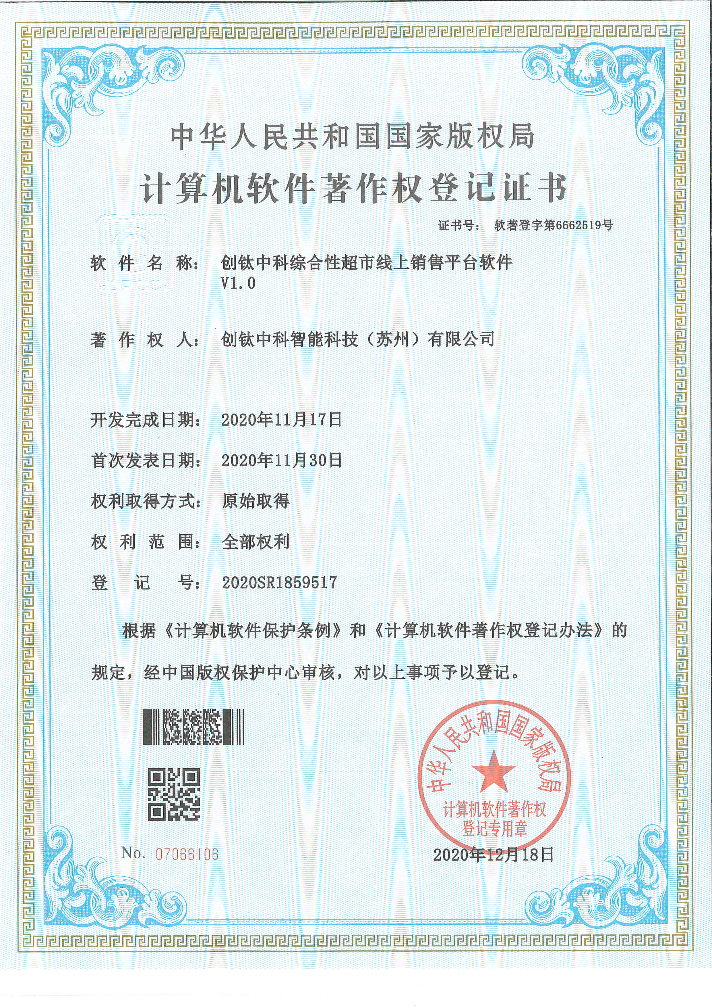軟件著(zhù)作權登記號:2020SR1859518 2020SR1859517 2020SR1859516 2020SR1859556 2020SR1859555 2020SR1865509 2020SR1865508 2020SR1865484 2020SR1865483 2020SR1870067 2020SR1870104 2020SR1869986 2020SR1870103