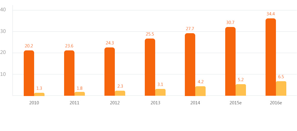 近年來(lái)我國跨境電商規模一直以超30%的增速增長(cháng),2014年達4.2萬(wàn)億元,已成為電商市場(chǎng)的新引擎;同時(shí)跨境電商在進(jìn)出口貿